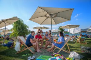 To enhance visitor comfort, more free umbrellas and loungers have been added, along with family pergolas providing extra privacy and shade. Among infrastructure improvements, highlights include: Renovation of garage doors at the Čolnarna facility, repairs to the diving platform, the installation of a second pier, A striking 3D JUMBO welcome sign at the entrance to the beach.