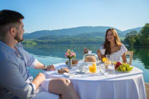 An idyllic spot for relaxation by Lake Velenje. Whether it’s a cup of premium coffee, a refreshing cocktail, a cold beer, or a glass of aromatic wine, Bar Vista has something to lift your spirits. A scoop of unique ice cream or a taste of exquisite culinary creations can brighten even the gloomiest day.