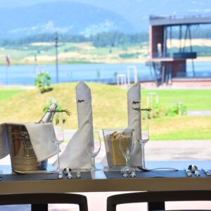 Jezero Restaurant can seat 200 guests in the indoor area and 100 on the restaurant’s covered terrace with a beautiful view of Lake Velenje.