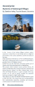 5-zvezdično doživetje Skrivnosti potopljenih vasi je vključeno med zmagovalce v brošuri “Destination of Sustainable Cultural Tourism Awards 2024” (Destinacije trajnostnega in kulturnega turizma 2024). Šaleška dolina je v lanskem letu v okviru tekmovanja ECTN AWARDS 2024 v kategoriji Digitalizacija v pametnem in trajnostnem kulturnem turizmu osvojila 2. mesto.