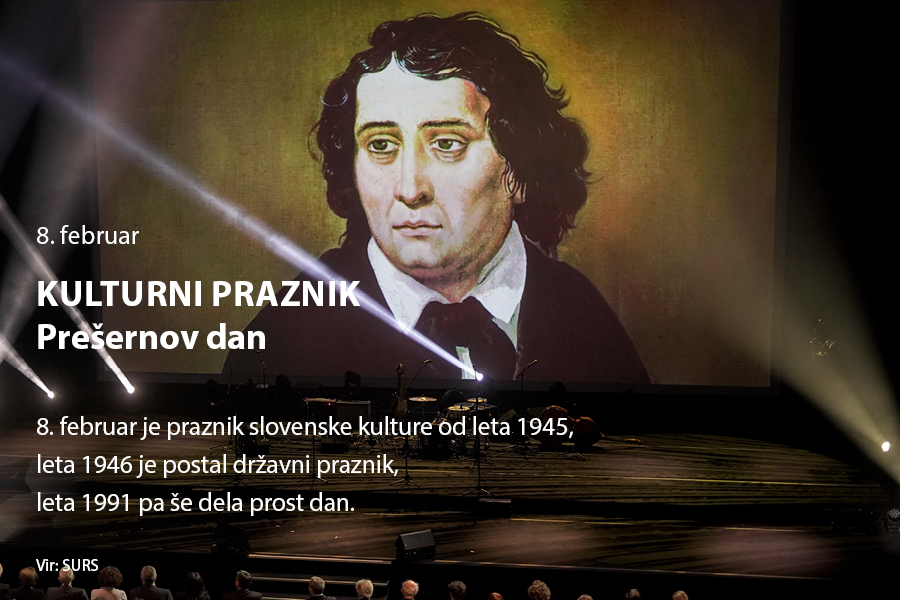 - Da 8. februarja praznujemo praznik slovenske kulture in spomin na Franceta Prešerna – Prešernov dan, slovenski kulturni praznik,