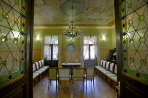- v preddverju pritličja je urejena informacijska točka, v osrednjem salonu v prvem nadstropju pa poročna dvorana in večnamenski protokolarni prostor,