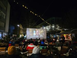 - 6. december: Praznični kino na prostem nas je popeljal v čarobnost filmskih zgodb pod zvezdnatim nebom.