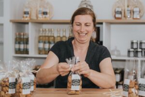 Blagovna znamka Potočnik-Poprask slovi po piškotih neprekosljive kakovosti. Njihovi piškoti so izdelani v družinskem krogu. Zanje Tatjana izbira najboljše sestavine in jih skrbno uravnoteži. Iz doma pridelane pirine moke, ki jo sproti nameljeta sinova, peče piškote z lešniki in čokolado, pirine veganske žemlje, kvašen kruh in še mnoge dobrote, ki navdušujejo gurmane. V prikupni trgovinici si privoščite sladke grižljaje podeželja, ki vam bodo obujali spomine na čarobne dni v okolici Šaleške doline. Izdelke je možno kupiti tudi v TIC Velenje v Vili Bianca. Več
