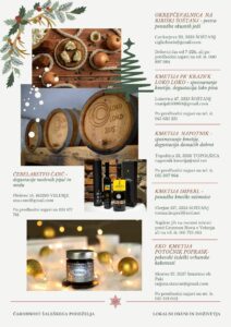 Še ne veste kaj podariti svojim najbližjim? Radost lahko izrazite tudi s simpatičnim darilom Čarobnosti podeželja Šaleške doline. Praznični lokalni paketi so na voljo v butični lokalni trgovini Bianca v Vili Bianca, ki deluje v okviru Zavoda za turizem Šaleške doline (Stari trg 3, Velenje). Za vas smo jih odeli v praznično darilno embalažo, ki si jih glede na želje in tematiko lahko sestavite tudi sami. Na voljo pa bodo tudi na stojnici Zavoda za turizem Šaleške doline na Prazničnem sejmu ob prižigu lučk, 3. decembra na Titovem trgu.