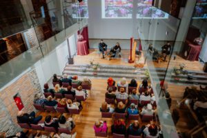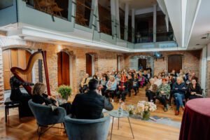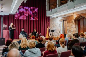 Dogodek je na harfi spremljala glasbenica Naja Mohorič.