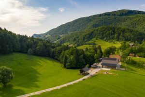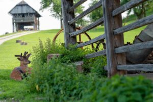 - Da je domačija poznana po 13 hektarjev veliki obori z okoli 130 jeleni, damjaki in mufloni.