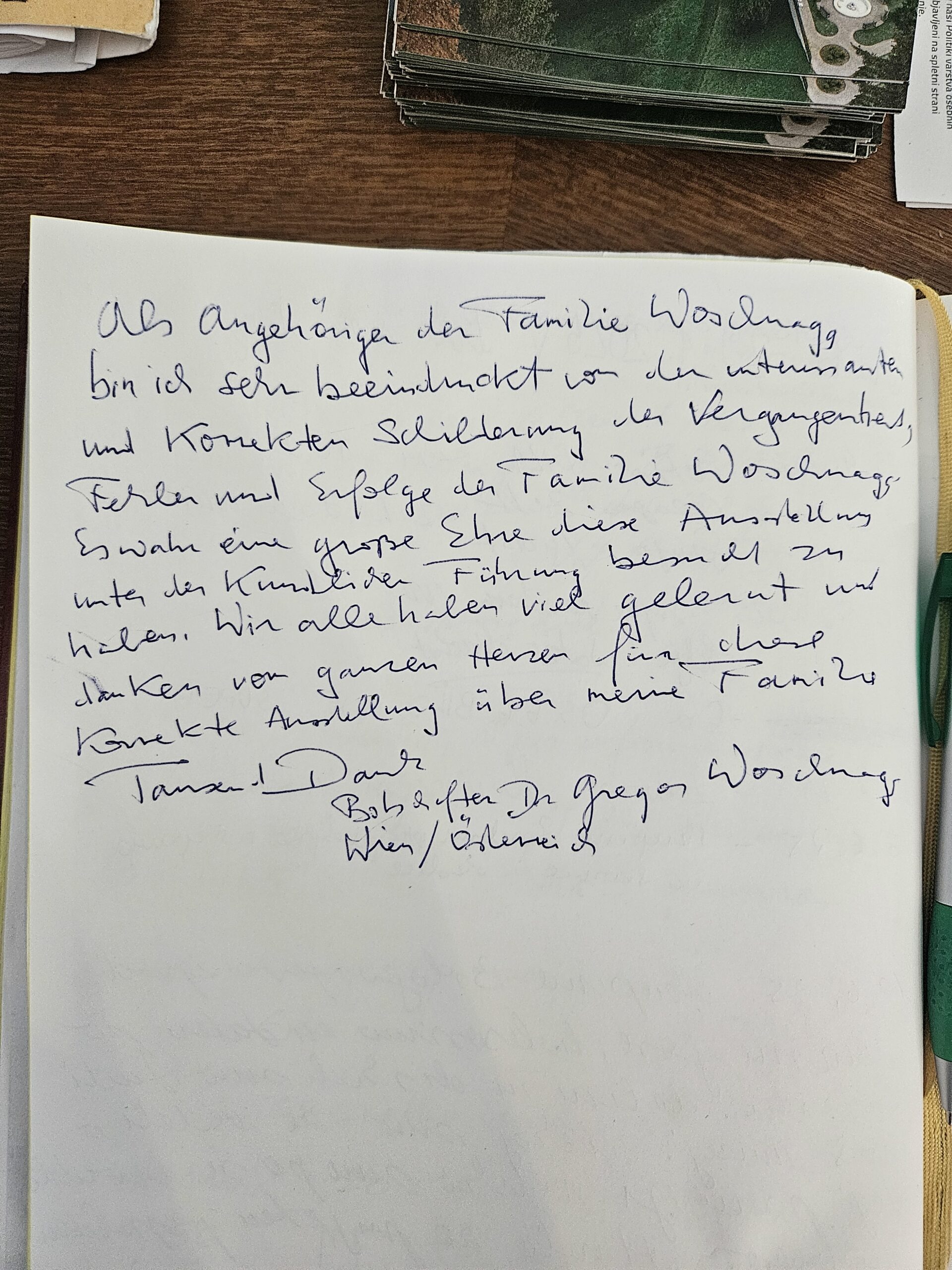 Bilo mi je v čast, da sem si v okviru vodenega ogleda lahko ogledal to razstavo. Vsi smo se veliko naučili, zato se iz srca zahvaljujemo za (korektno) razstavo o moji družini.