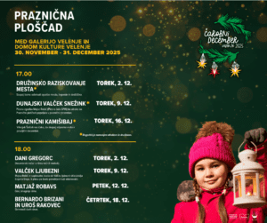 30. 11. 2025 - 31. 12. 2025 Praznična ploščad Delovni čas: ponedeljek—četrtek;13.00—21.00 petek; 13.00—23.00 sobota; 10.00—23.00 nedelja; 13.00—20.00 Lokacija: Drugo - Praznična ploščad (med Galerijo Velenje in Domom kulture Velenje) Organizator: Zavod za turizem Šaleške doline Vstopnina: 0 €