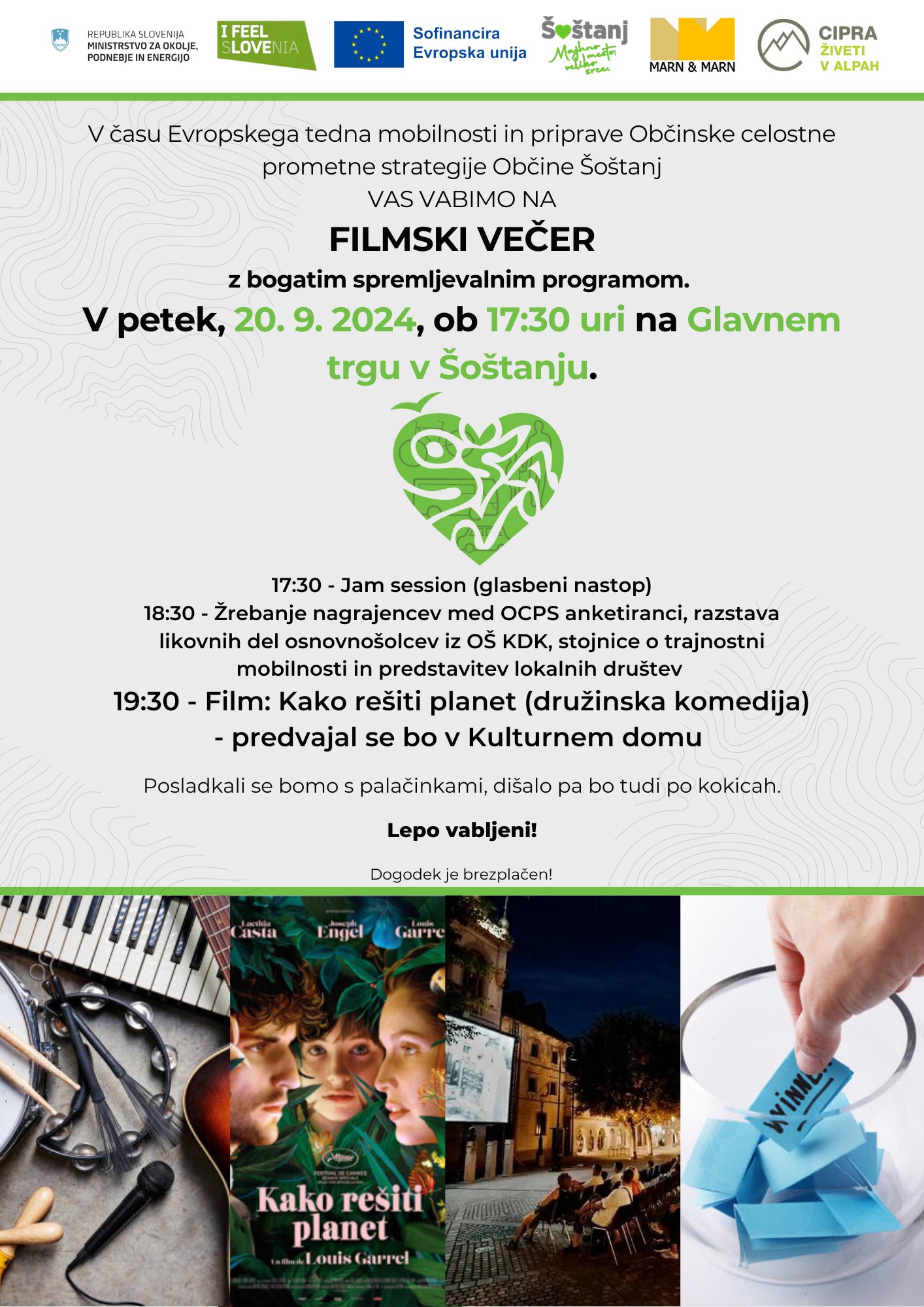 V času Evropskega tedna mobilnosti in priprave Občinske celostne prometne strategije Občine Šoštanj VAS VABIMO NA FILMSKI VEČER z bogatim spremljevalnim programom.