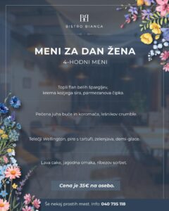 7. in 8. marca v Bistroju Bianca pripravljajo prijetno praznovanje dneva žena s posebnim menijem. Obiskovalce čaka kulinarično razvajanje v toplem vzdušju, meni pa je zasnovan prav za to priložnost.