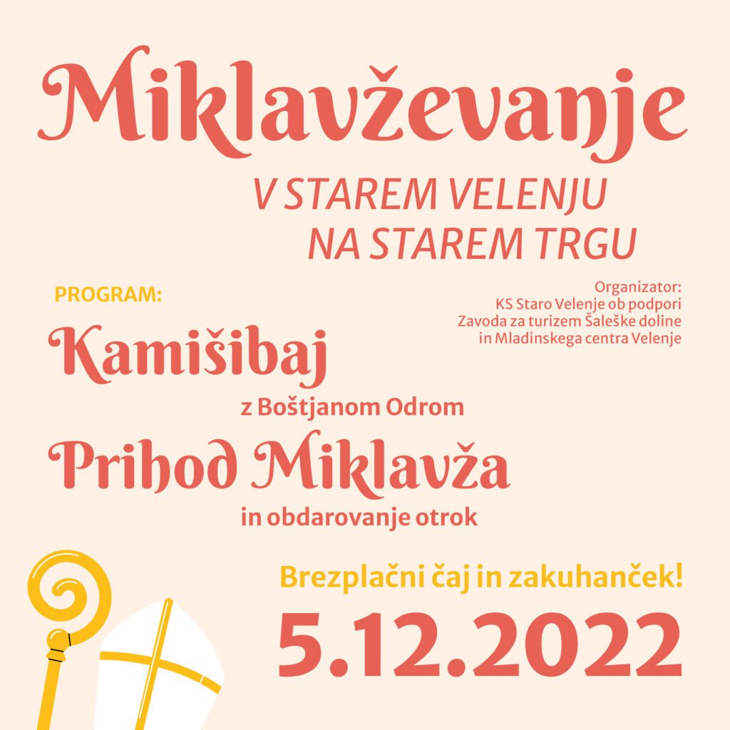 Krajevna skupnost Staro Velenje ob podpori Zavoda za turizem Šaleške doline in Mladinskega centra Velenje organizira Miklavževanje na Starem trgu v Starem Velenju.