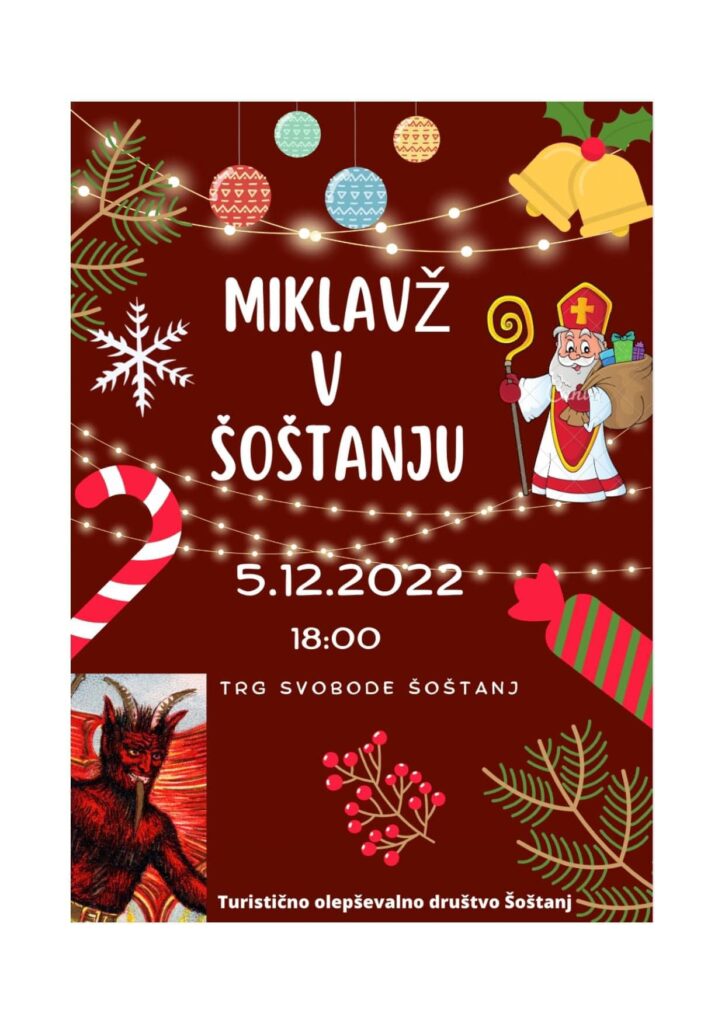 Turistično olepševalno društvo Šoštanj v ponedeljek, ob 18. uri organizira prihod Miklavža na Trgu svobode v Šoštanju.