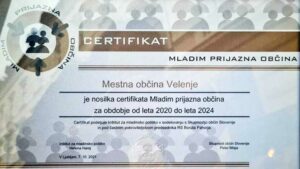 Letos je Inštitut za mladinsko politiko ponovno objavil javni poziv za podaljšanje veljavnosti certifikata Mladim prijazna občina za naslednje štiriletno obdobje. Mestna občina Velenje je oddala obsežno prijavo z ustreznimi dokazili o izpolnjevanju kriterijev na vseh prednostnih področjih in sprejela sklep o podaljšanju veljavnosti certifikata Mladim prijazna občina za obdobje 2020–2024.