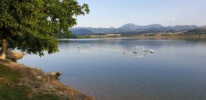 V Velenjskem jezeru so na voljo goli za igranje družabne igre z žogo v vodi, tako imenovane vaterpolo. Priporočamo, da igro igrate z ekipo s po sedmimi igralci. Moštvi poskušata zadeti z žogo nasprotnikov gol (vrata). Igra traja 4 x 8 minut z dvema odmoroma po 2 minuti in 5 minut med polčasom.