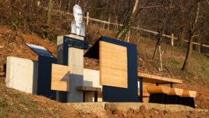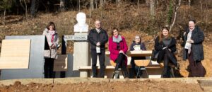 Pobudnik za postavitev obeležja je bilo Društvo Revivas Škale, omogočila pa ga je Mestna občna Velenje. Pri zasnovi obeležja, katerega avtorica je arhitektka Ana Glinšek, je sodeloval tudi Muzej Velenje. Muzej Velenje, društvo Revivas, Krajevna skupnost Škale-Hrastovec, Mestna občina Velenje in kmetija Miklavžina, po domače Strž, bodo v letošnjem letu pripravili še nekaj dogodkov in izdali publikacijo, s katerimi bodo skušali novo obeležje in znamenitega rojaka čim bolj približati širši javnosti.