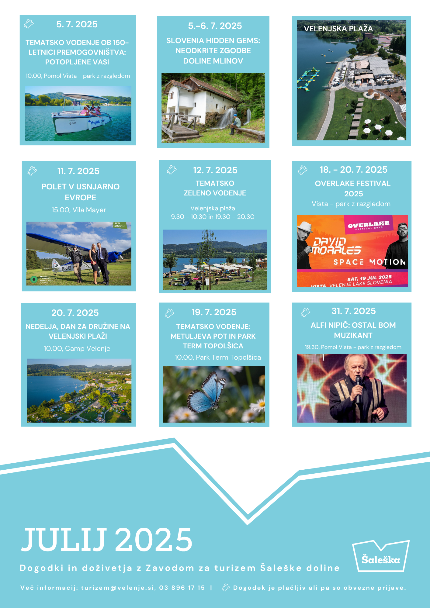 Julij v Šaleško dolino prinaša od športnih izzivov do glasbenih festivalov, od kulturnih prireditev do družinskih doživetij. Vroči julijski dnevi v Šaleški dolini bodo tudi letos zapolnjeni s številnimi dogodki, ki bodo navdušili različne generacije obiskovalcev. Na Zavodu za turizem Šaleške doline skupaj s številnimi partnerji pripravljamo pester poletni program, ki povezuje naravno kuliso jezer in urbanih središč z glasbo, rekreacijo, tradicijo in sodobno ustvarjalnostjo.