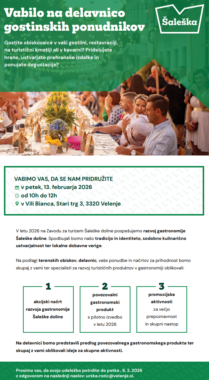 Prosimo vas, da svojo udeležbo potrdite do petka, 6. 2. 2026, na e naslov: urska.rozic@velenje.si