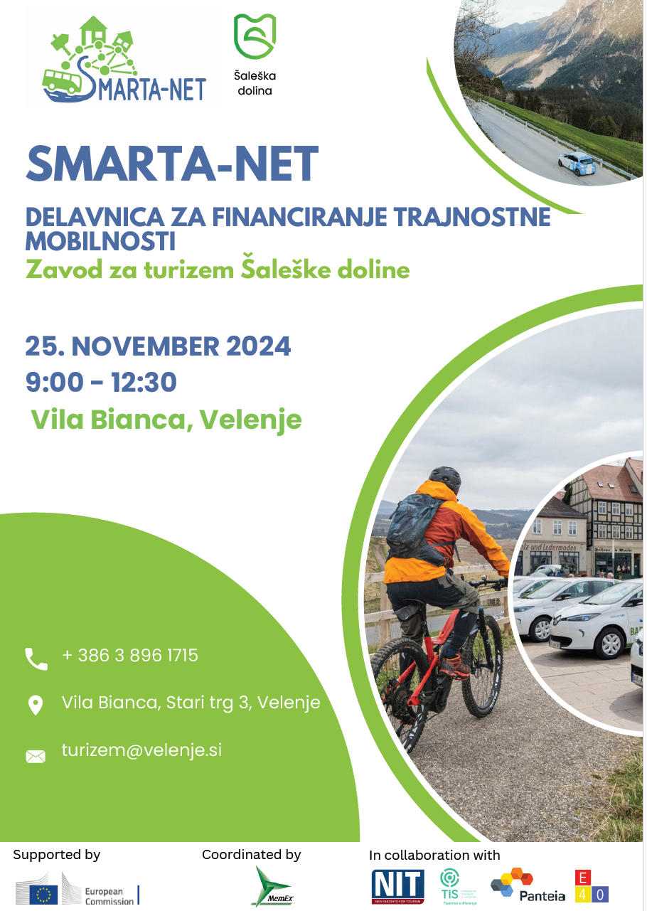 Zavod za turizem Šaleške doline je eden izmed partnerjev projekta SMARTA-NET. V sklopu projekta si prizadevamo spodbujati trajnostne rešitve deljene mobilnosti med podeželskimi območji, znotraj oddaljenih območij in med oddaljenimi podeželskimi območji ter mestnimi območji. Hkrati v projektu želimo upoštevati pomen mobilnosti pri razvoju ekoturizma. Projekt financira Evropska komisija in poteka pod okriljem generalnega direktorata za mobilnost in promet (DG MOVE).