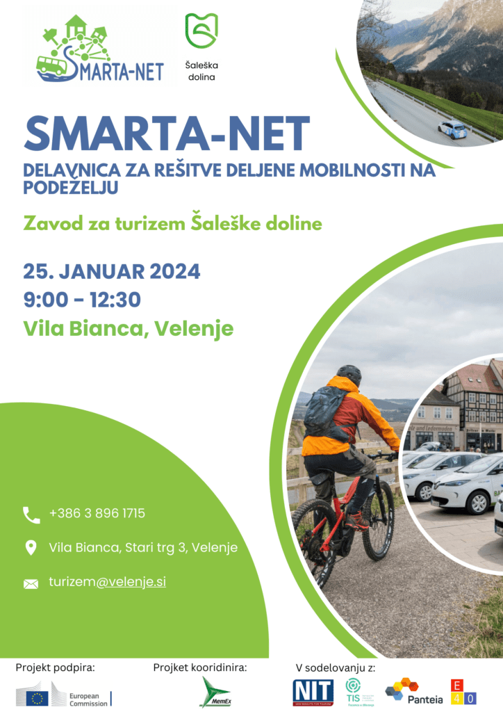 Zavod za turizem Šaleške doline je eden izmed partnerjev projekta SMARTA-NET. V sklopu projekta si prizadevamo spodbujati trajnostne rešitve deljene mobilnosti med podeželskimi območji, znotraj oddaljenih območij in med oddaljenimi podeželskimi območji ter mestnimi območji. Hkrati v projektu želimo upoštevati pomen mobilnosti pri razvoju ekoturizma. Projekt financira Evropska komisija in poteka pod okriljem generalnega direktorata za mobilnost in promet (DG MOVE).