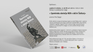 V petek, 8. oktobra, vabi Muzej Velenje ob 18. uri v Kulturni dom Šoštanj na predstavitev knjige »Spominska obeležja NOB v občini Šoštanj«. Publikacija o spominskih obeležjih NOB v občini Šoštanj v podobah in zgodbah je nastala ob 80. obletnici prvega partizanskega napada na mesto Šoštanj med 2. svetovno vojno. Pogovorni večer z avtorico knjige in kustosinjo Muzeja usnjarstva na Slovenskem Pino Špegel bo vodila sodelavka Muzeja Velenje Andželina Jukić. Uvodoma bodo prisotne nagovorili Urša Kurnik, predsednica Krajevne skupnosti Šoštanj, Drago Koren, direktor občinske uprave Občine Šoštanj, Andreja Katič, predsednica Združenja borcev za vrednote NOB Velenje in Tanja Verboten, direktorica Muzeja Velenje. V kulturnem programu bo nastopil Maj Koletnik (harmonika, mentor Zmago Štih), učenec Glasbene šole Fran Korun Koželjski Velenje.