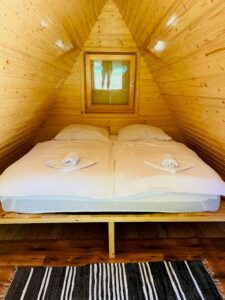 Na Domačija Lamperček lahko tudi prespite v glamping hiškah in uživate v neokrnjeni naravi ob žvrgolenju ptičk. Nudijo tudi wellness hiško, kjer se lahko sprostite v masažni kadi, se ogrejete v savni in uživate v popolni sprostitvi.