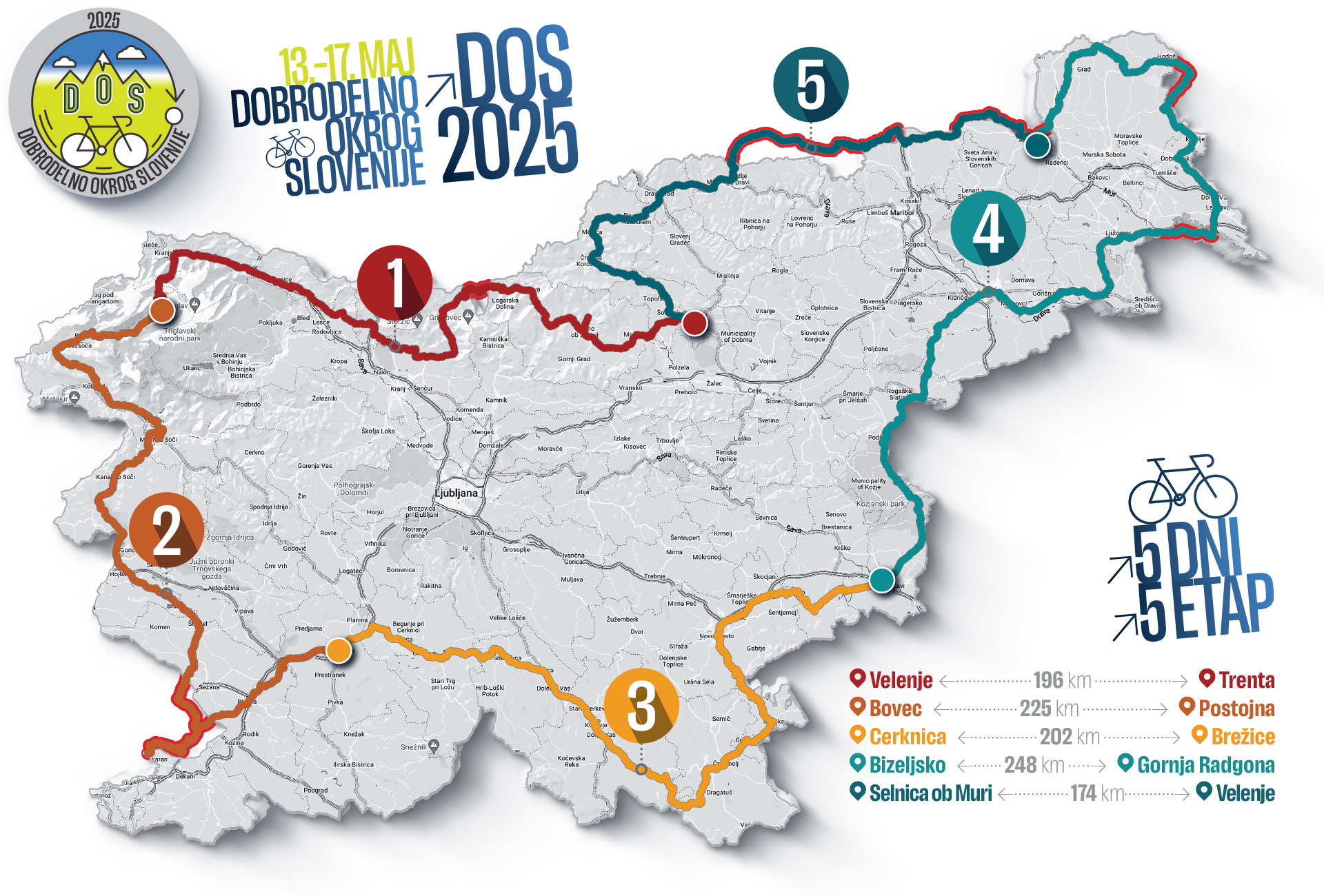 Mestna občina Velenje bo letos ponosno gostila največji vseslovenski humanitarni kolesarski dogodek DOS – Dobrodelno okrog Slovenije. Gre za edinstven dobrodelni projekt, ki že peto leto zapored povezuje Slovenijo prek športne in humanitarne pobude, katere srce je neutrudni Dami Zupi – kolesar, ki bo v petih dneh prekolesaril več kot 1.100 kilometrov dolgo traso okoli Slovenije. Letos ima Velenje posebno vlogo, saj bo glavno prizorišče začetka in zaključka 5-dnevne kolesarske trase DOS 2025. Kolesarji bodo v torek, 13. maja, štartali iz Velenja, v soboto, 17. maja, pa se v Velenje tudi vrnili, kjer jih bomo pozdravili in nagradili z aplavzom za trud. Na zaključni 5. etapi v soboto, 17. maja, se bo kolesarjem pridružil tudi župan Mestne občine Velenje Peter Dermol.