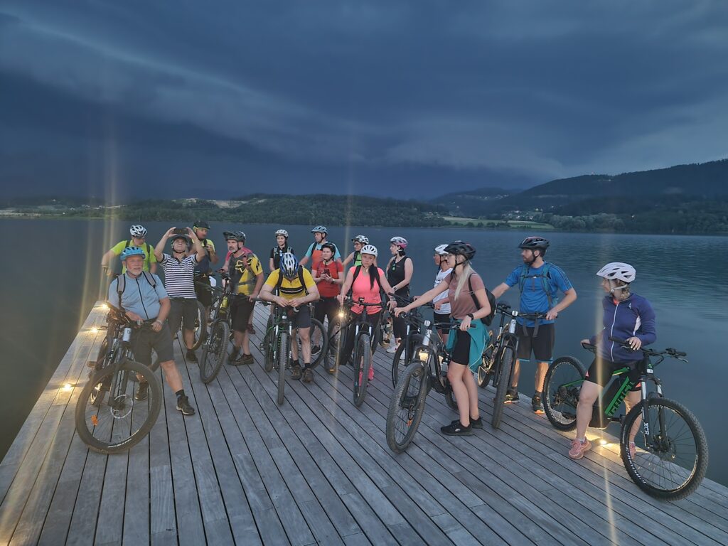 Zbrali smo se na VISTI ob Velenjskem jezeru, kjer smo se spoznali z e-kolesi in opremo, ki nam jo je priskrbel vodnik Bojan Napotnik, KolesarSKI center Beli zajec. Pot nas je vodila proti Škalskemu jezeru, mimo Ribiškega doma od koder smo se usmerili proti hriboviti pokrajini Graške Gore, ki pa smo jo s kolesi na elektronski pogon z lahkoto premagovali. Uživali smo ob spustu proti Topolšici kjer smo se razveselili gostoljubne postrežbe v novem Glampingu Langus. Potem, ko smo se okrepčali z domačimi dobrotami, smo se odpravili proti centru Šoštanja, kjer nas je pozdravil župan Darko Menih. Družbo so mu delali starodobni kolesarji iz Kulturnice Gaberke. Vsi zbrani smo si nato ogledali fotografsko razstavo v Mestni galeriji Šoštanj. Ob koncu ture smo uživali še ob pogledih na Družmirsko jezero in se v zahajajočem soncu odpeljali nazaj proti Velenju.