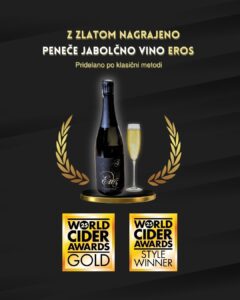 Jabolčna penina Eros iz Kmetijske zadruge Šaleška dolina je na prestižnem ocenjevanju World Drink Awards v Angliji osvojila zlato priznanje in postala zmagovalka svoje kategorije. Penina, ki 12 mesecev zori v steklenicah po klasični metodi, nosi ime po bogu ljubezni – Erosu. Kot njegove puščice nas tudi njeni naravni mehurčki zadenejo nepričakovano in blagodejno.